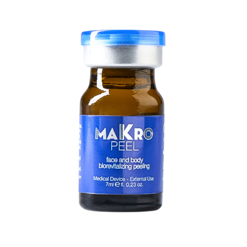 Applicare MAKROPEEL®, con mani protette da guanti oppure con un pennellino, dosando 2 ml di prodotto sul viso (tralasciando le zone dove la pelle è più sensibile, come il contorno occhi, le ali del naso e le commissure labiali) in maniera omogenea, effettuando leggere manovre di massaggio per pochi secondi, al fine di garantire un migliore assorbimento delle sostanze attive.